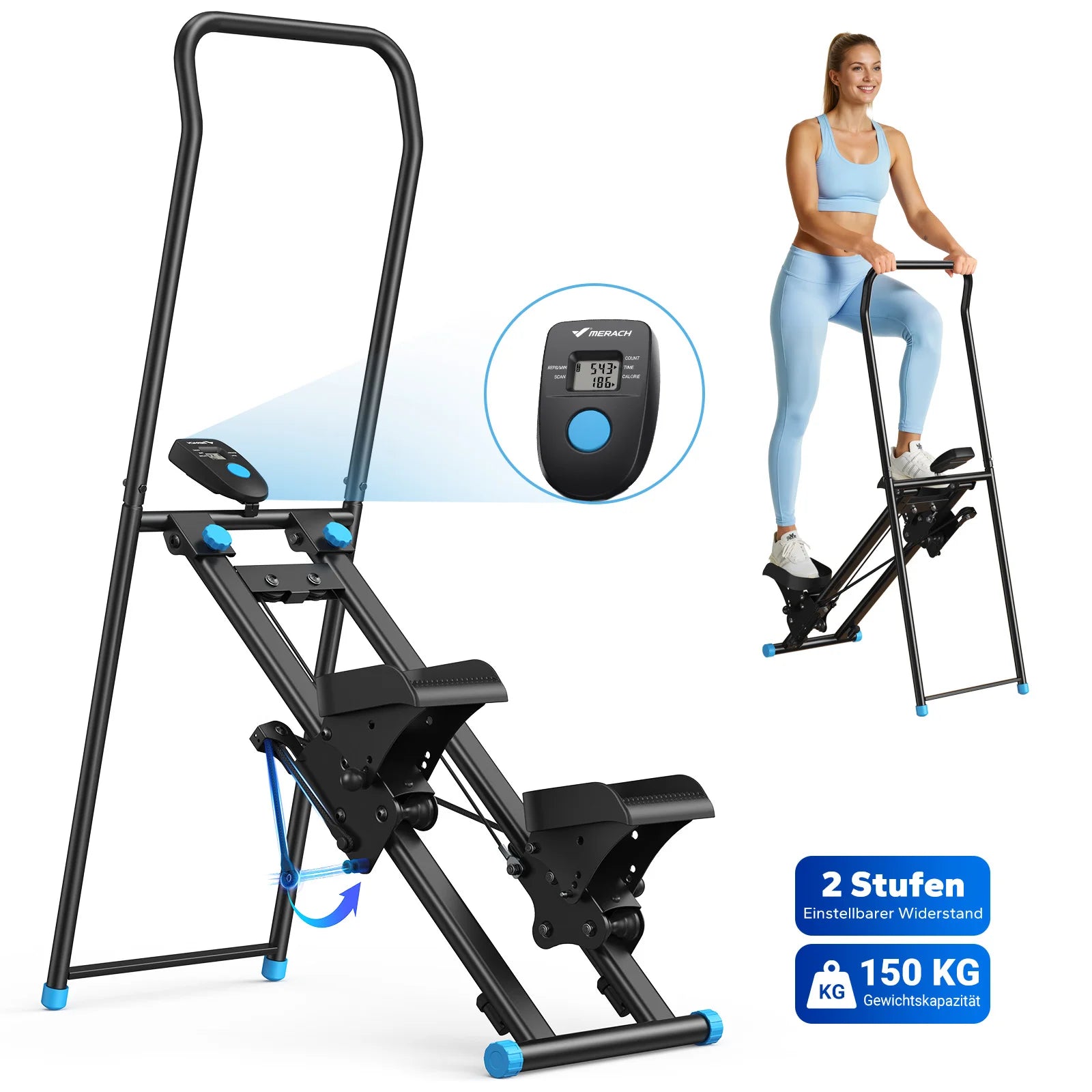 Effektiver Treppentrainer für das Heimtraining mit Griffen. Ganzkörpertraining, verstellbare Pedale, faltbares, platzsparendes Design und stabiler Rahmen für 136 kg.
