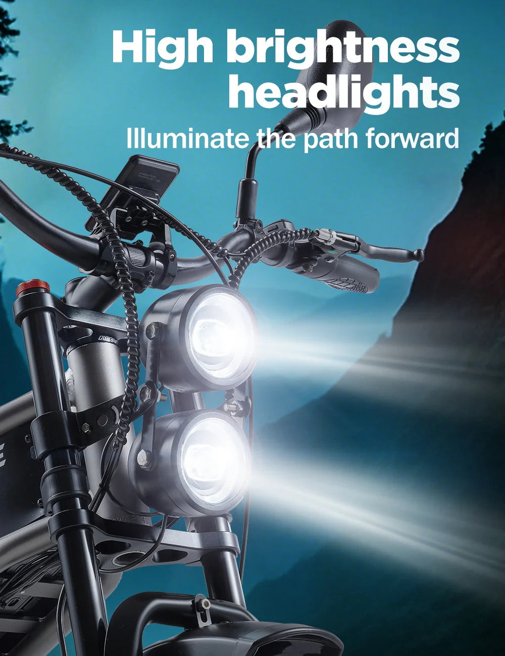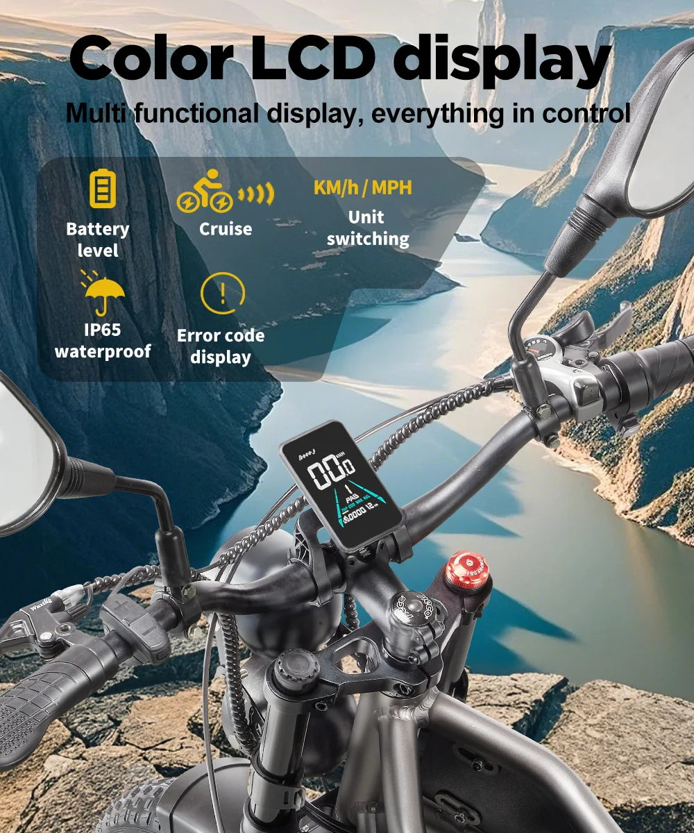 Krachtige elektrische fiets met 48V lithium-ionaccu, borstelloze motor en 20" wielen. Actieradius 31-60 km en topsnelheid tot 50 km/u - perfect voor woon-werkverkeer en vrije tijd.