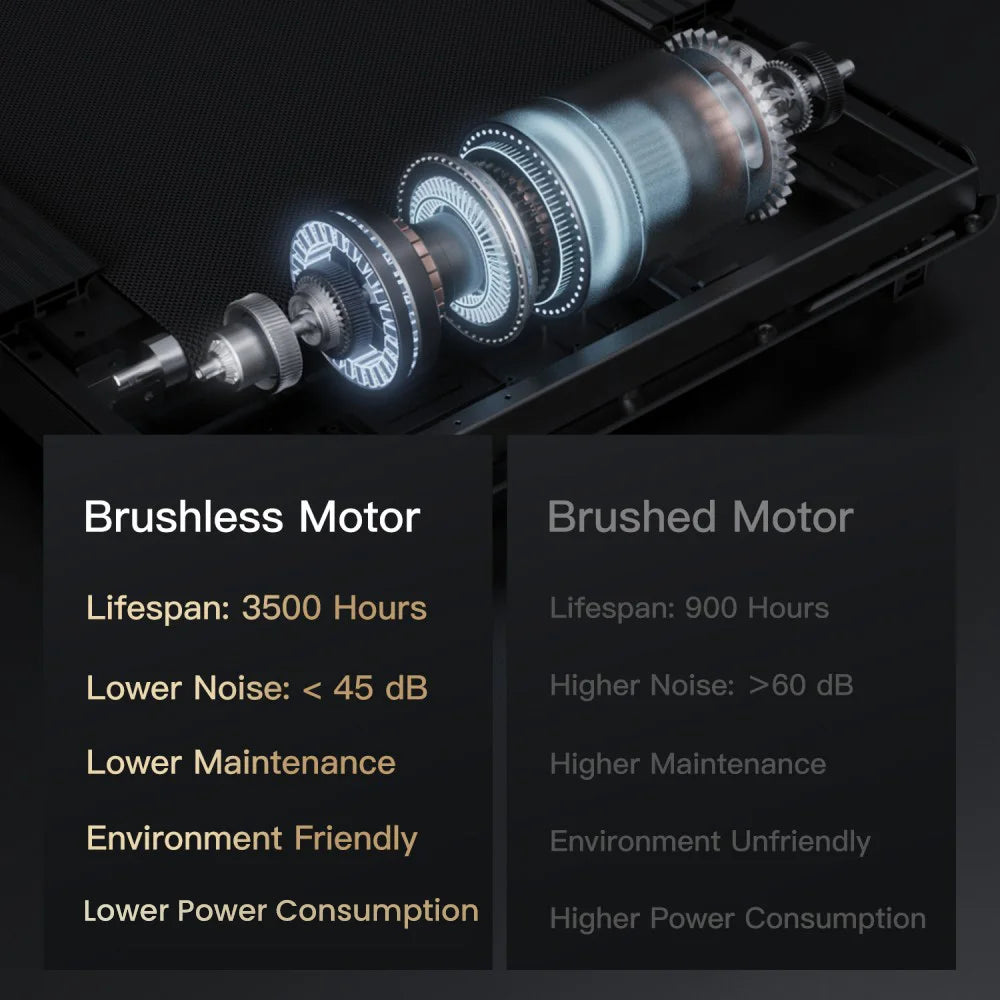 Løbemaskinens motor har en maksimal effekt på 2,5 HK og kan bære brugere op til 136 kg. Denne portable løbemaskine har en hastighedsrange på 1-12 km/t samtidig med, at støjniveauet holdes under 45 decibel for ikke at forstyrre andre.